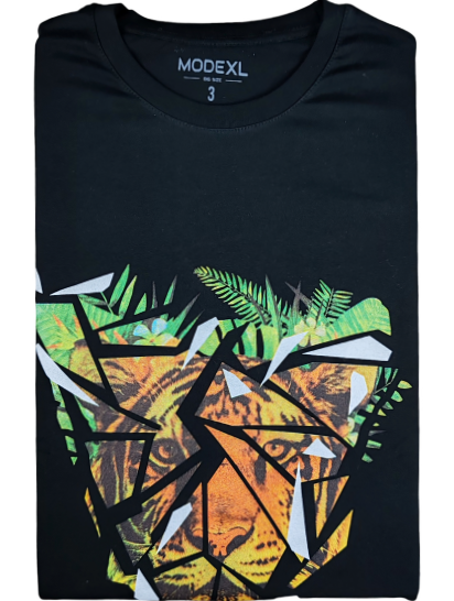 Playera gráfica TIGER BASKIL cuello redondo Marca ModelXL Strech Talla Grande
